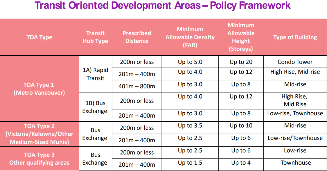 Figure 1: Policy framework for TOD in recently passed BC legislation
