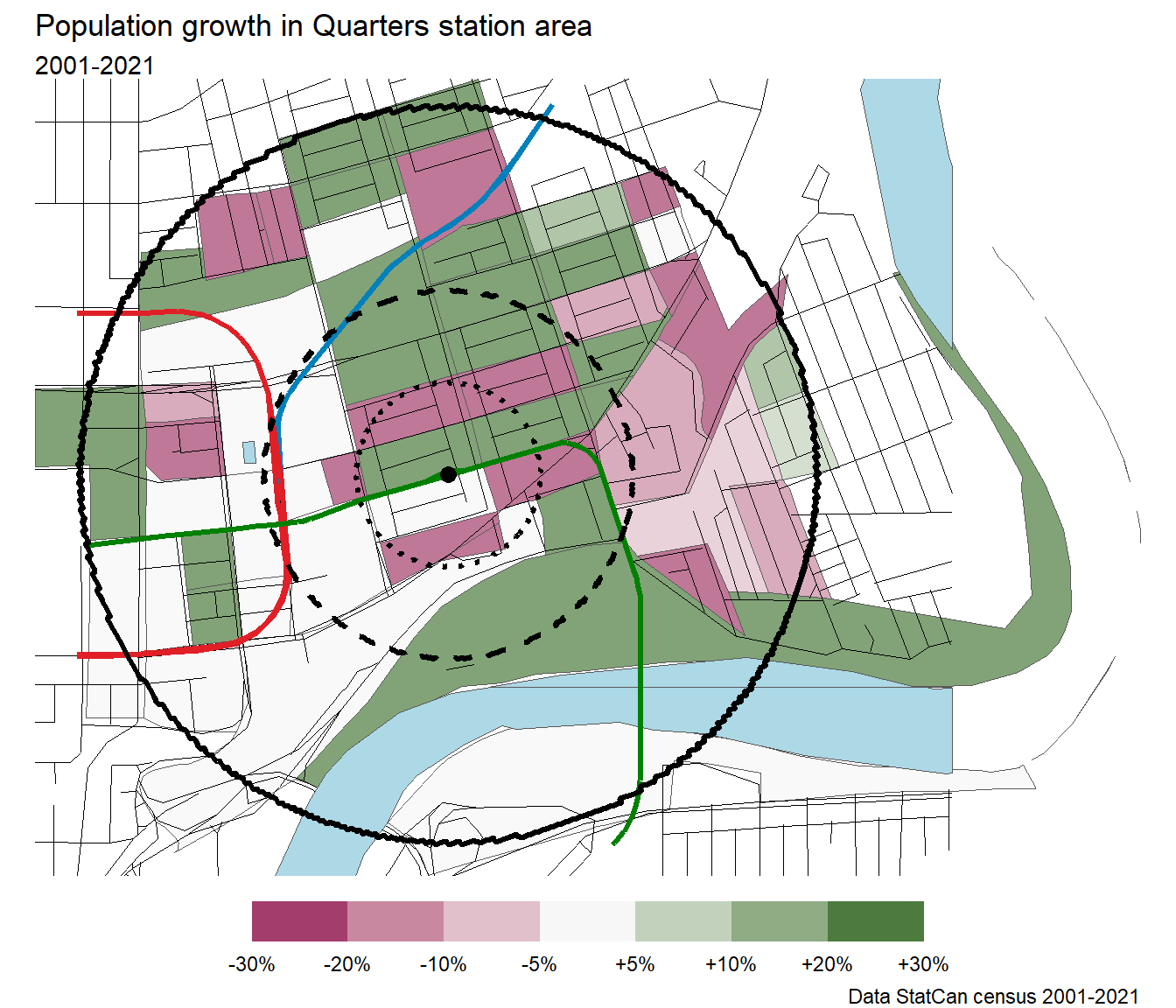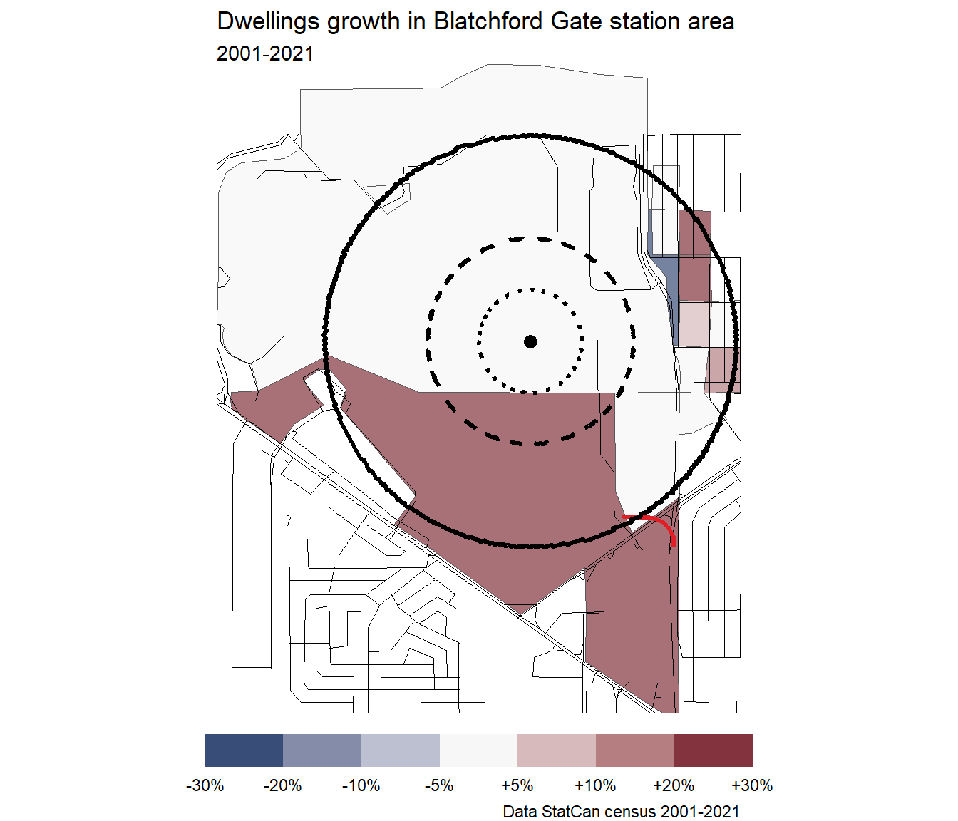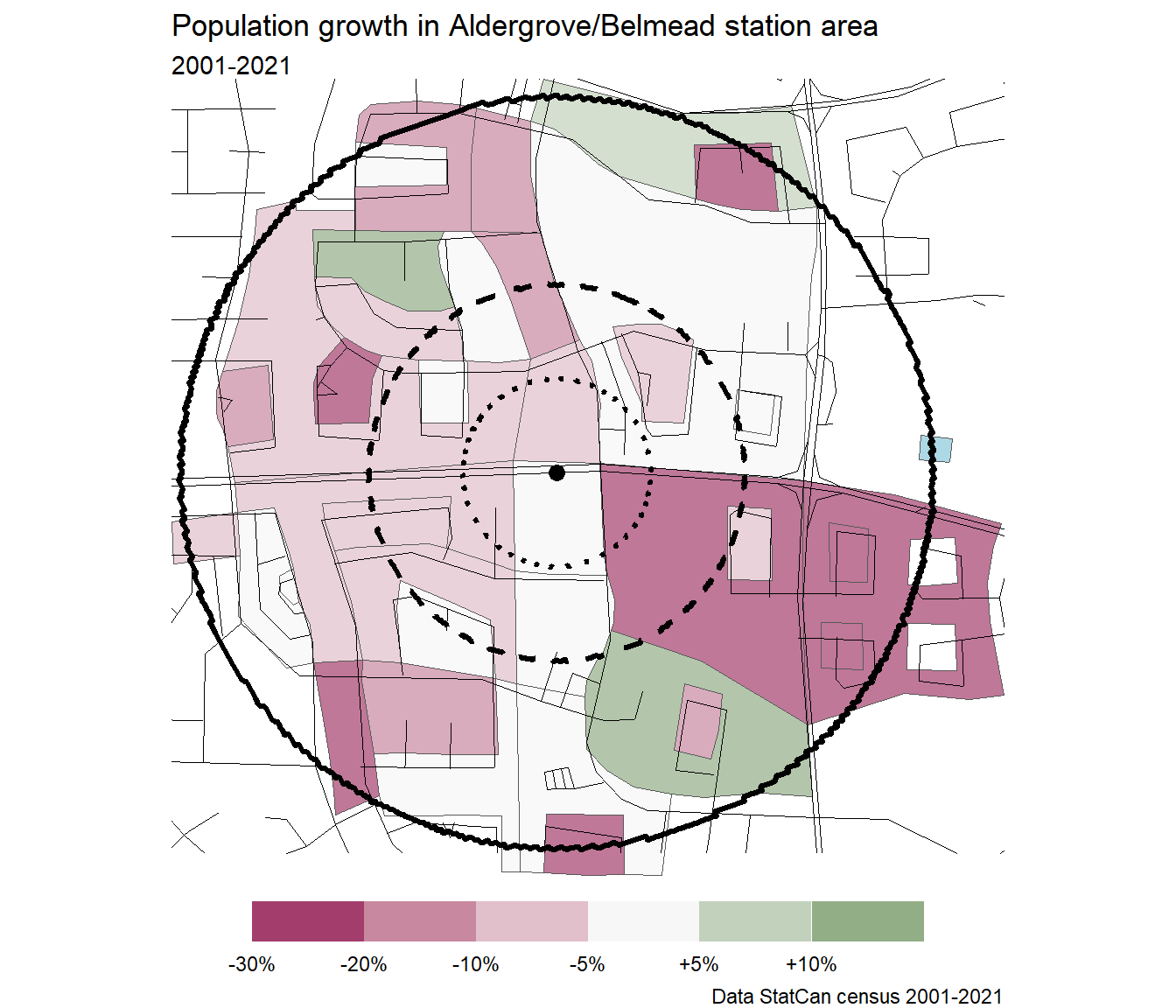 Because Lewis Farms has so little residential, there are no dissemination blocks included in the station area. The census plots cannot be generated.